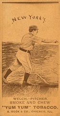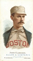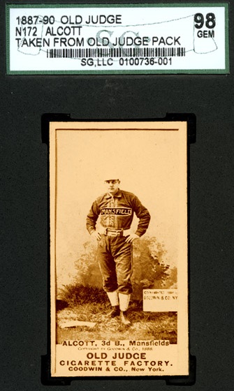 Any 19th century unopened cigarette packs are extremely rare. In 1998 a collection of three unopened Old Judge Cigarette packs was found and opened. Each contained a "common" player N172 card. The cards were graded by SGC Grading Service. Two were graded mint and the third near mint. One of those cards is shown here: