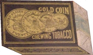 No package that carried these baseball cards is known to exist. Shown below is a photo-shop enhanced image of a Gold Coin Chewing Tobacco Pack taken from an advertising sign. Though there is no direct evidence, the image shown below is likely to be the same pack that was used to insert their 1887 N284 Base Ball Player Cards.